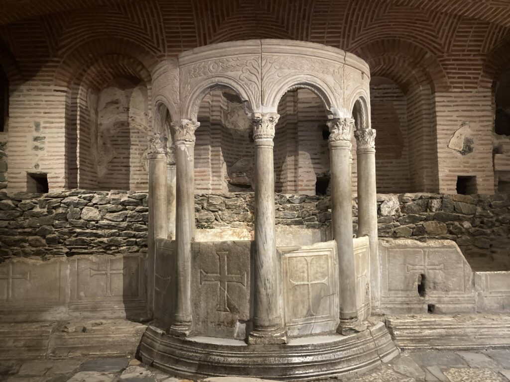 Ο ναός του Αγίου Δημητρίου, αρχικά, χτίστηκε μετά το 313 ως μικρός ναός πάνω στα ερείπια ρωμαϊκού λουτρού. Στην Κρύπτη του θεωρείται πως είχε φυλακιστεί και μαρτυρήσει ο Άγιος Δημήτριος. Αργότερα χτίστηκε μεγαλύτερος ναός που κάηκε και αποκαταστάθηκε δύο φορές. Στο εσωτερικό του έχει εντυπωσιακά μαρμάρινα αρχιτεκτονικά μέλη, σπουδαίες τοιχογραφίες και ψηφιδωτά.