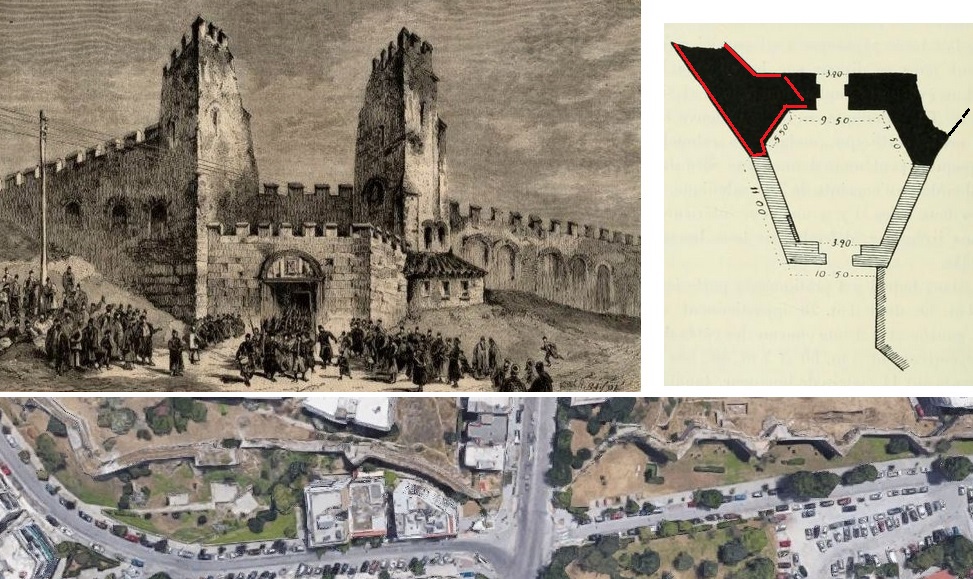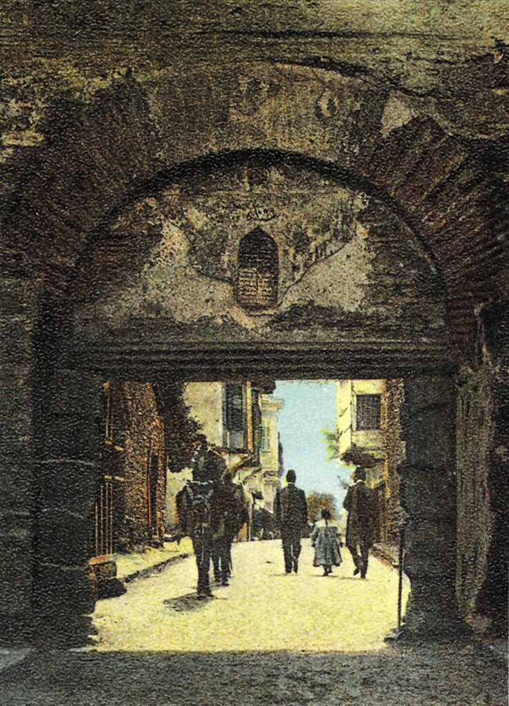 Στην εξωτερική πλευρά της πύλης υπήρχε εντοιχισμένη μια μαρμάρινη πλάκα που έχει πάνω της χαραγμένο ένα τούρκικο ποίημα. Το άθροισμα των γραμμάτων του ποιήματος ήταν η χρονολογία που ο Μουράτ Β’ κατέκτησε τη Θεσσαλονίκη.