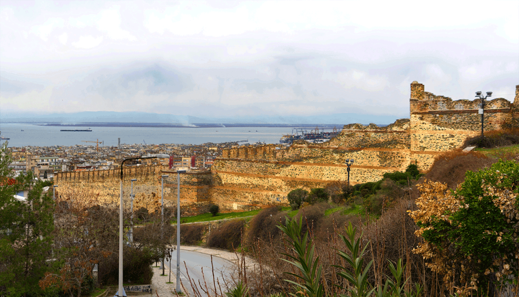 Τα τείχη της Θεσσαλονίκης προφύλασσαν την πόλη από διάφορες απειλές. Αρχικά, χτίστηκε η αρχαία οχύρωση, έπειτα η βυζαντινή και τέλος η οθωμανική. Η κάθε κατασκευαστική φάση ενσωμάτωνε την προηγούμενη και ενισχυόταν με διάφορες προσθήκες, όπως προτείχισμα, τριγωνικούς, κυκλικούς, τετράπλευρους και πολυγωνικούς πύργους. Το σχήμα της είναι τραπεζιόσχημο και η συνολική περίμετρος της ανερχόταν σε 8 χλμ.!