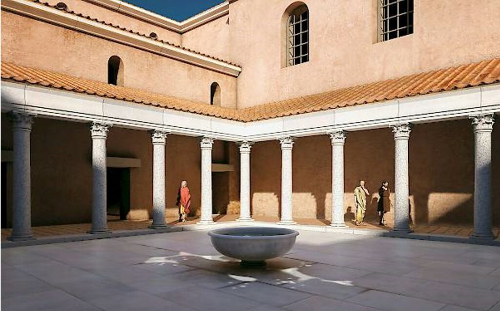 - Στο κέντρο της αυλής υπήρχε ένα αναβρυτήριο, δηλαδή ένα σιντριβάνι!