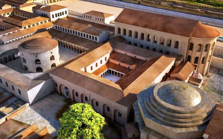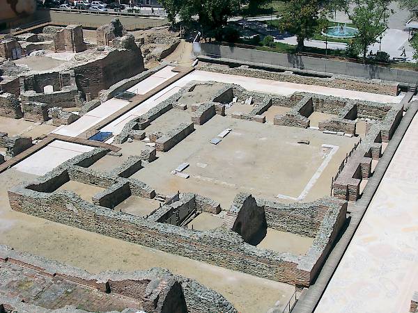 Πριν από την ανέγερση του ανακτόρου στις αρχές του 4ου αιώνα υπήρχαν στην περιοχή πολυτελείς κατοικίες του 2ο-3ο αιώνα μ.Χ. Το κεντρικό κτίριο ήταν διώροφο, είχε κεντρικό αίθριο με στοές, βασιλικά διαμερίσματα και αναβρυτήριο στο κέντρο. Επικοινωνούσε μέσω διαδρόμων και πυλών με άλλα κτίρια. Στα δάπεδα υπάρχουν εντυπωσιακά ψηφιδωτά και μαρμάρινες πλάκες που σώζονται μέχρι σήμερα! Στα οθωμανικά χρόνια στη θέση του χτίστηκε το Λευκό Τέμενος.